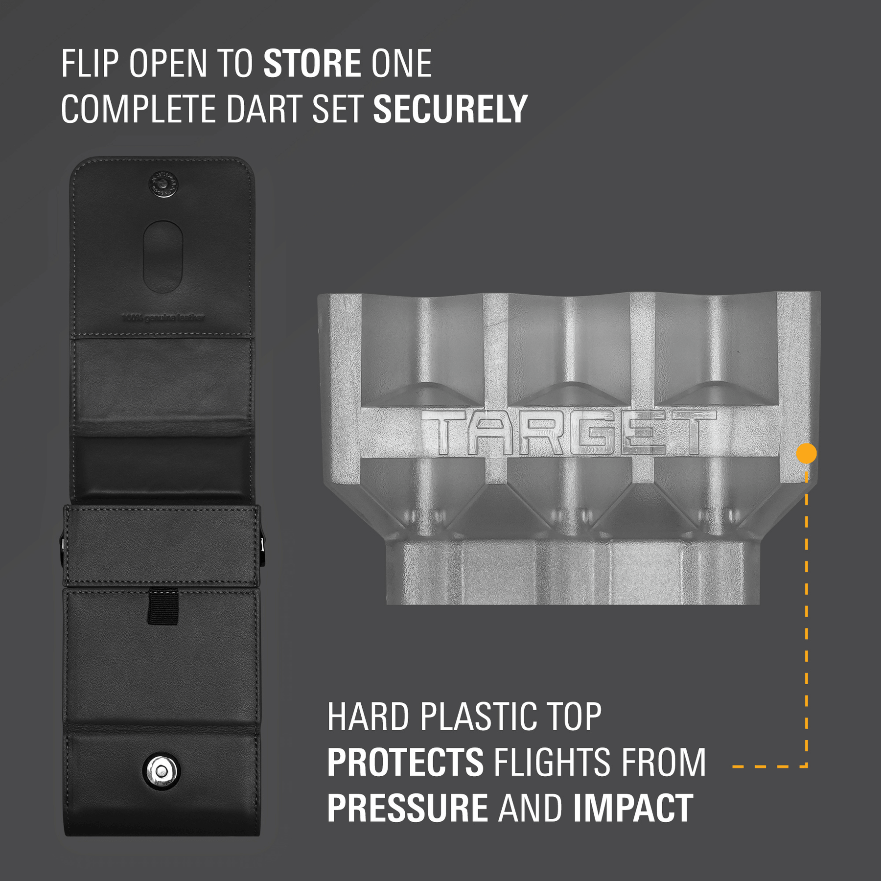 Das Milli Case ist ein hochwertiges Dart-Wallet aus echtem Leder und vereint Eleganz mit durchdachter Funktionalität. Es bietet Platz für ein komplett montiertes Dartset, das sicher und geschützt transportiert werden kann. Eine verstärkte Hartplastik-Abdeckung schützt die Flights zuverlässig vor Druck und Beschädigungen. Die sorgfältige Verarbeitung mit feinen Nähten sorgt für eine langlebige, edle Haptik. Ideal für Spieler, die Wert auf Schutz, Komfort und ein stilvolles, kompaktes Etui für den täglichen Einsatz legen.